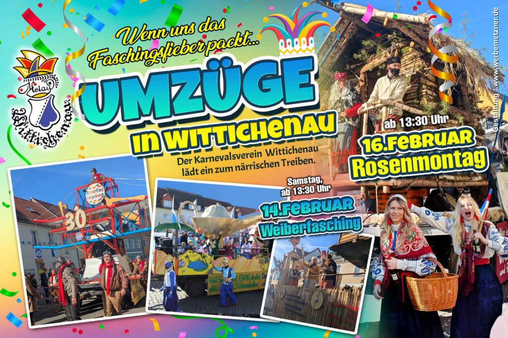 Weiberfaschingsumzug am Samstag, den 14. Februar um 13:30 Uhr & Großer Rosenmontagsumzug am 16. Februar um 13:30 Uhr durch die Straßen der Wittichenauer Innenstadt!